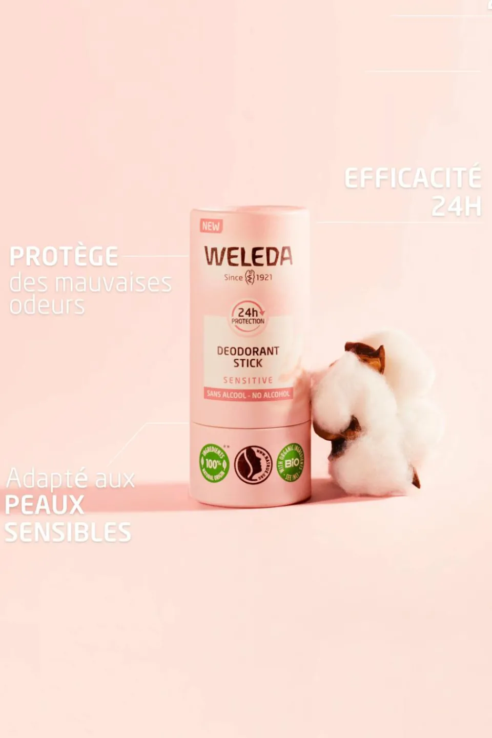 Ce déodorant stick Sensitive, adapté aux peaux sensibles grâce à sa formule douce, protège des mauvaises odeurs.