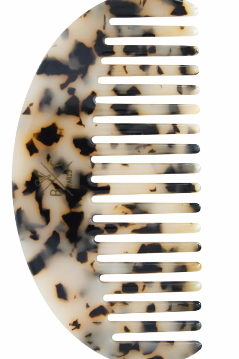 Peigne en finition écaille, idéal pour tous les types de cheveux. Il démêle en douceur grâce à ses dents arrondies.