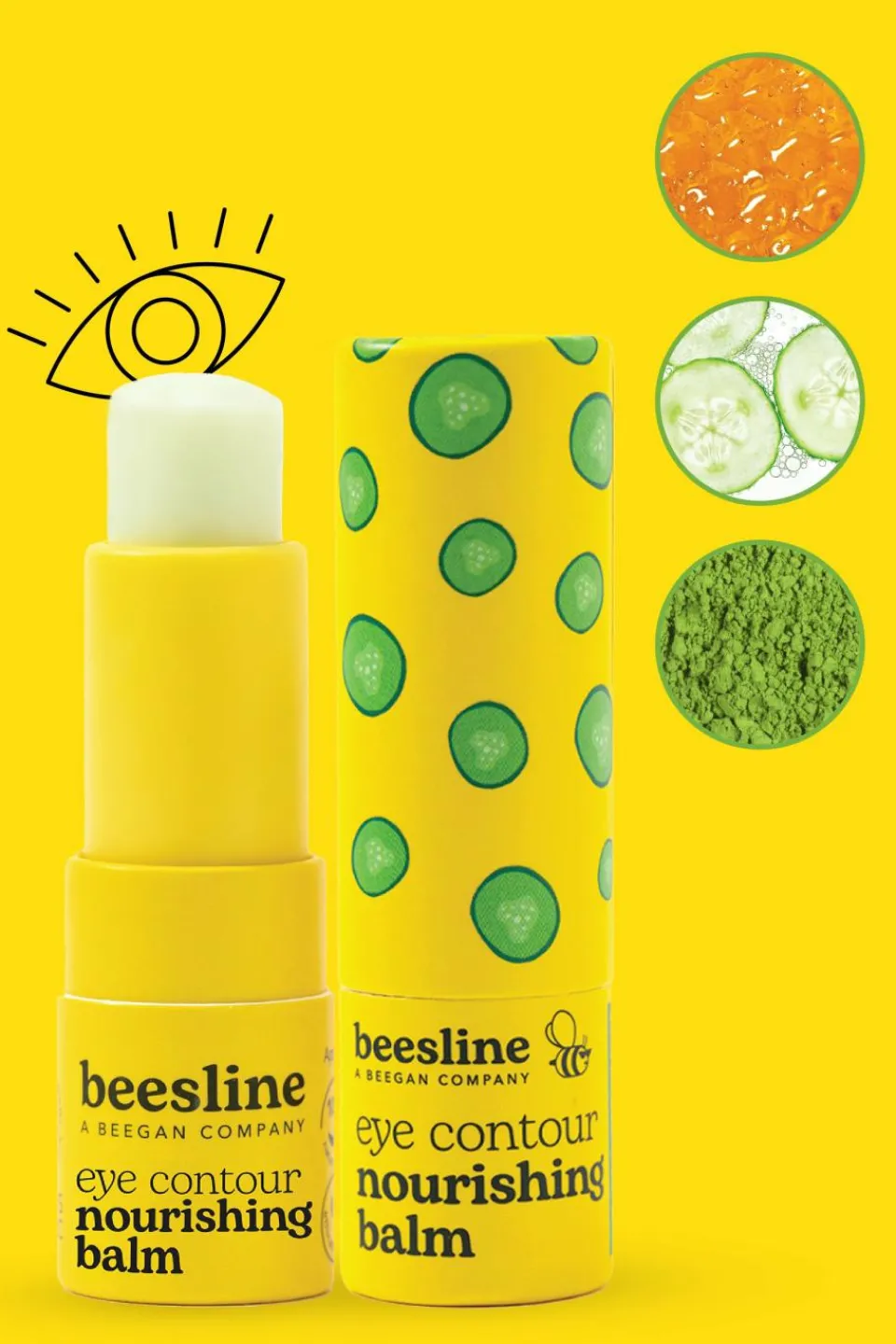 Découvrez notre baume contour des yeux en format stick, 100% d’origine naturelle et pratique à appliquer. Riche en extrait de concombre, il réduit les poches et les cernes tandis que le miel hydrate et nourrit la peau. Le thé Matcha agit comme un antioxydant, protégeant la peau délicate du contour des yeux contre les dommages causés par les rayons UV. 93% ont ressenti un contour des yeux plus hydraté*. Noté 100/100 sur Yuka.