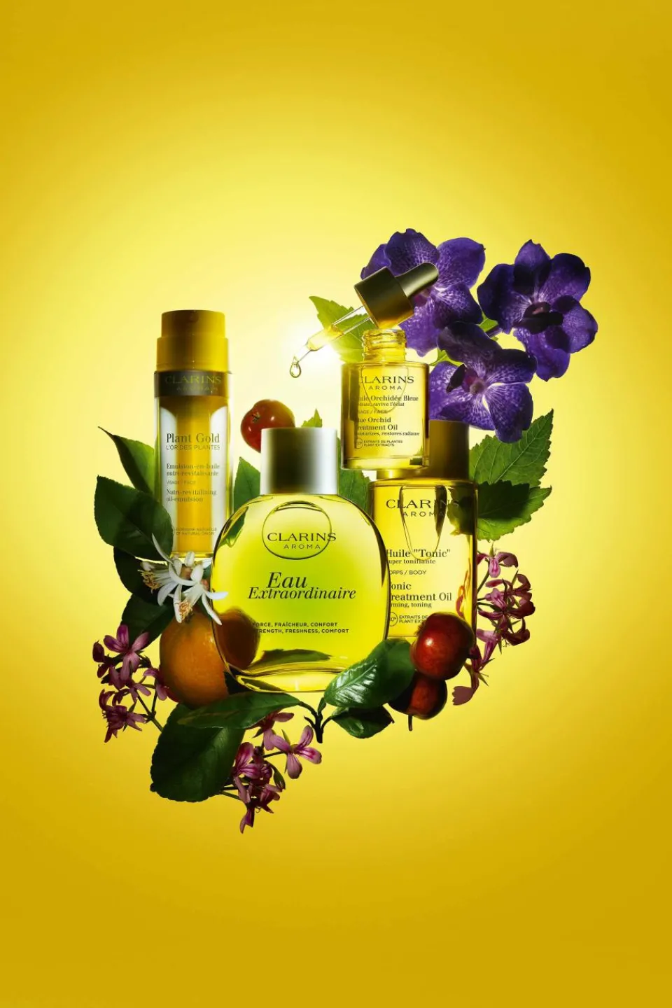 Véritables symboles de la marque Clarins, les huiles 100% extraits de plantes nées en 1954, ont jeté les bases de l’aromathérapie moderne. Alliant le pouvoir olfactif et stimulant des huiles essentielles aromatiques aux pouvoir bienfaisants d’extraits de plantes, ces concentrés de nature qui agissent en synergie sur la peau et sur l’esprit, renferment toute la science des plantes Clarins.