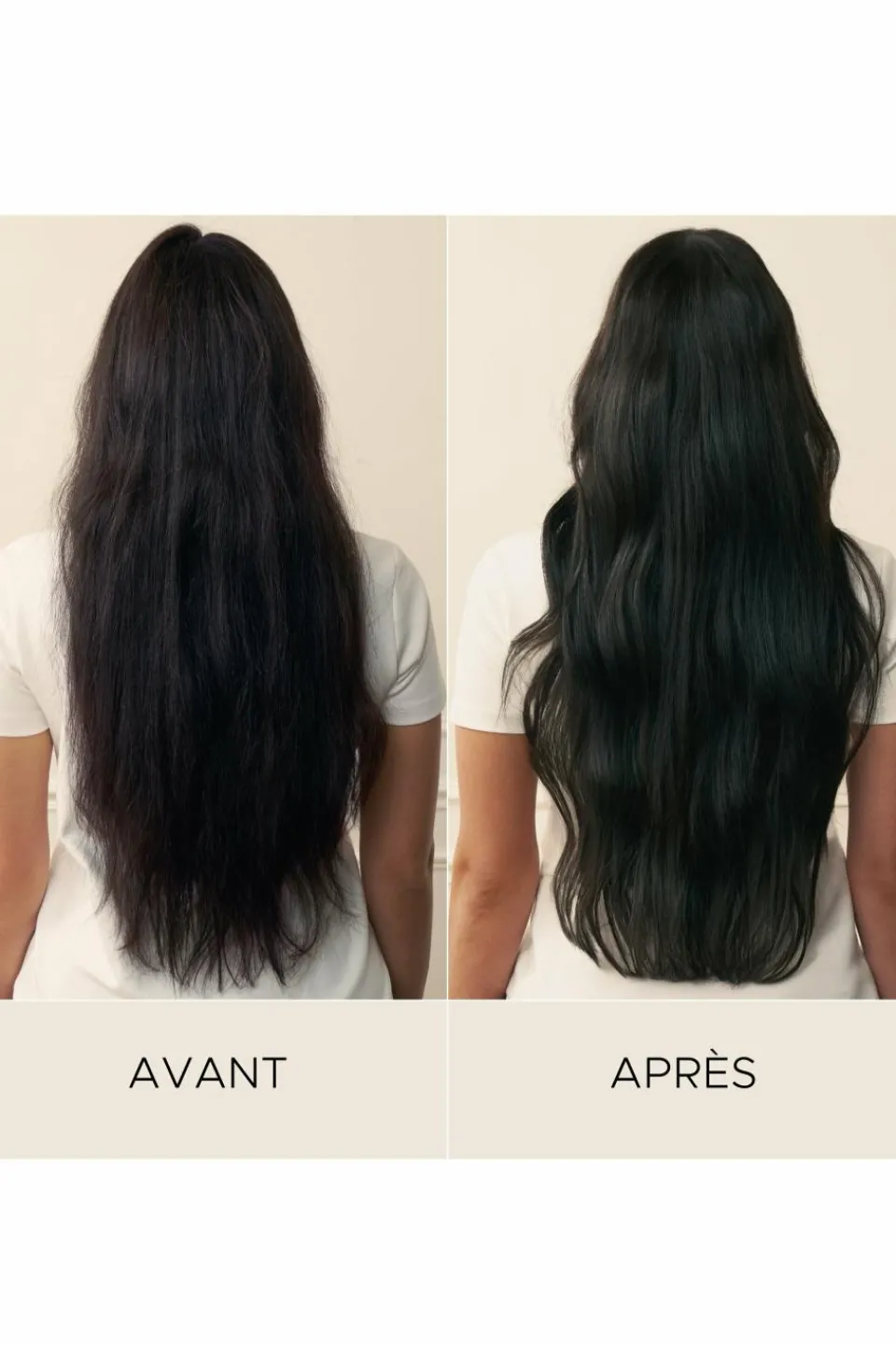 Les cheveux sont régénérés, somptueux, lissés et intensément nourris, pour un fini souple, brillant et sans frisottis.