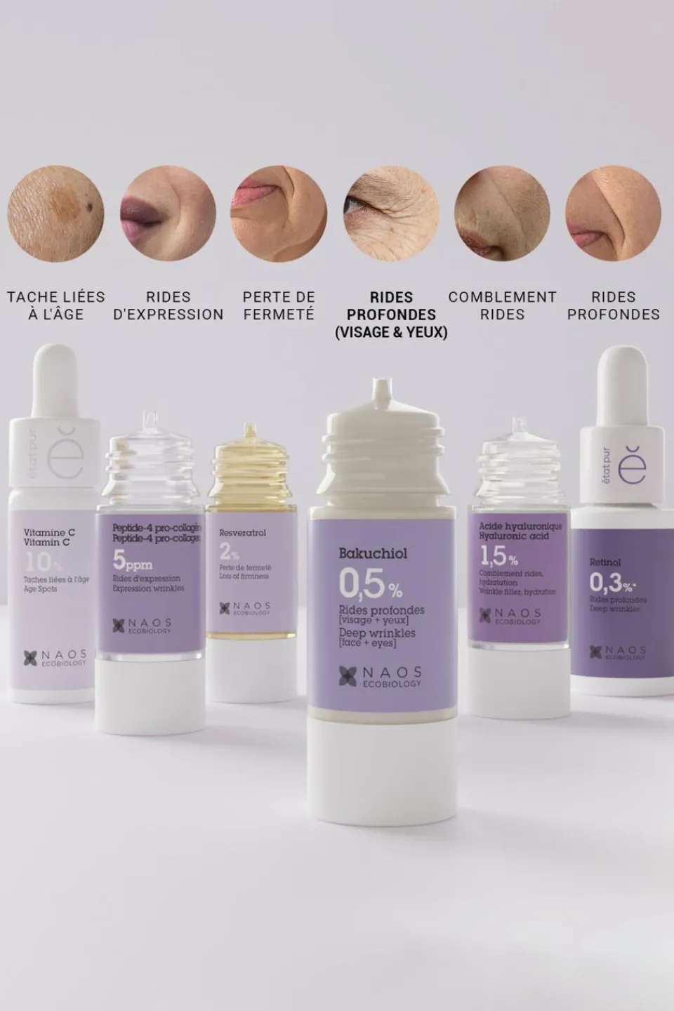 L’Actif Pur Bakuchiol 0,5% est l’alternative haute tolérance au Rétinol pour réduire efficacement les rides profondes du visage et du contour des yeux.