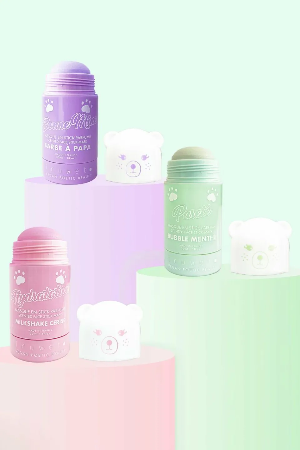 Masque visage en stick formulé à base de kaolin.