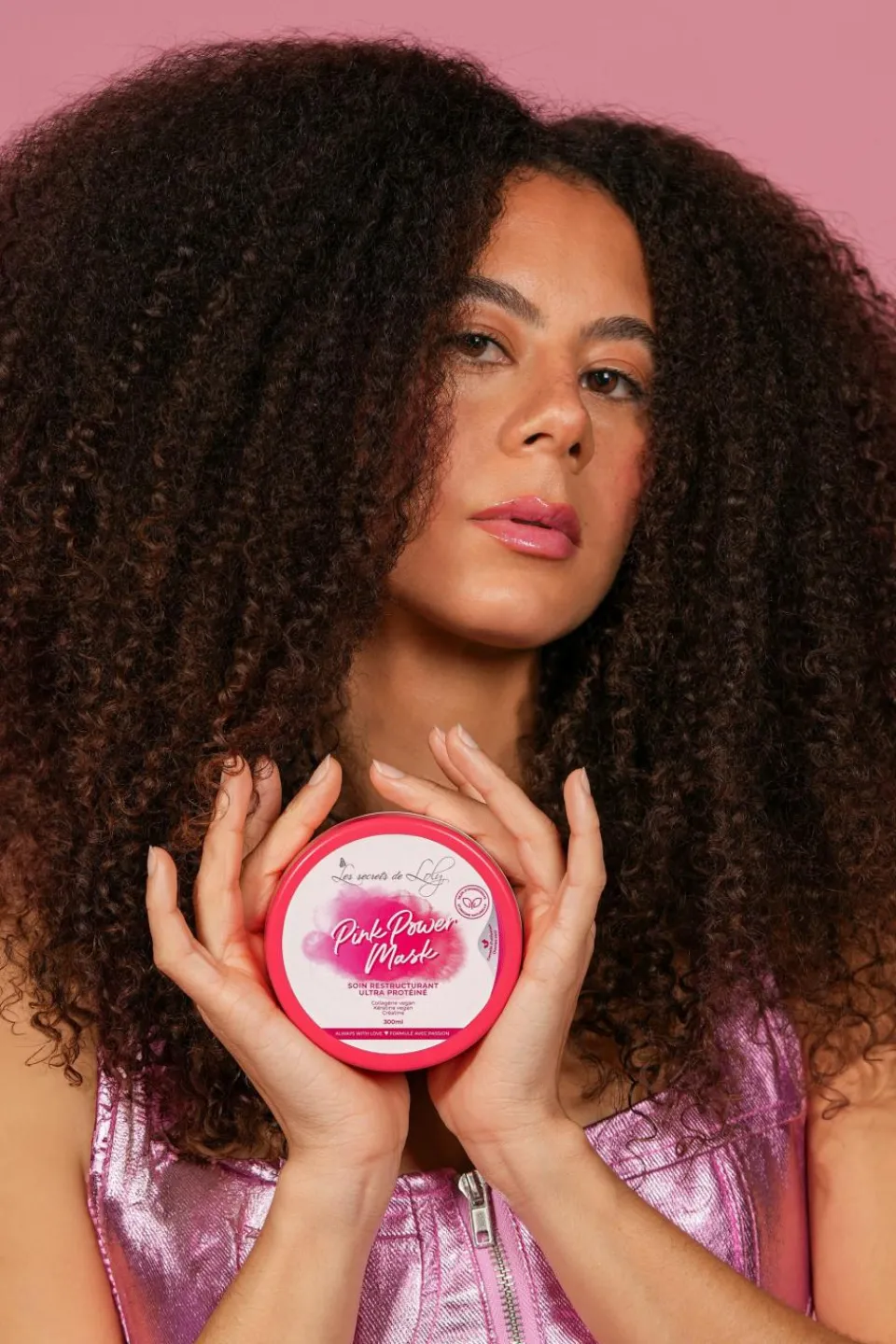Le Pink Power Mask est un soin capillaire restructurant instantané et véritable traitement de choc pour les cheveux secs et abîmés. Il nourrit intensément la fibre capillaire et renforce la structure naturelle du cheveu endommagé.