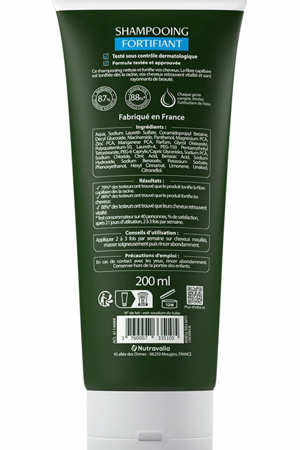 (2) Fortifie les cheveux : 88%**.