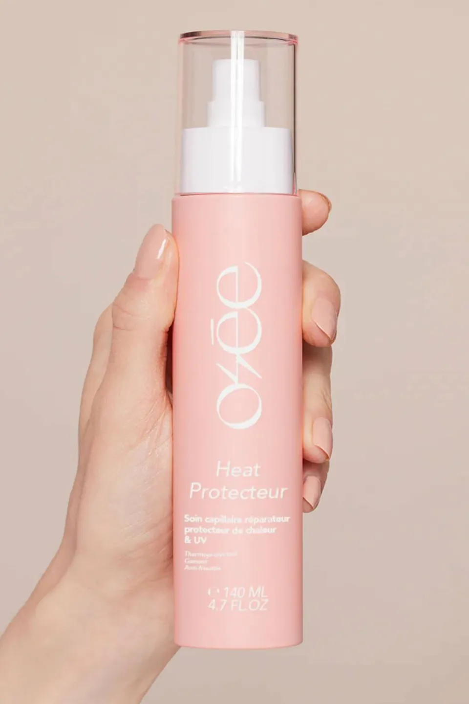Sur cheveux secs, vaporisez légèrement sur vos mèches, laissez sécher quelques instants avant d’utiliser vos outils de coiffage chauffants.
