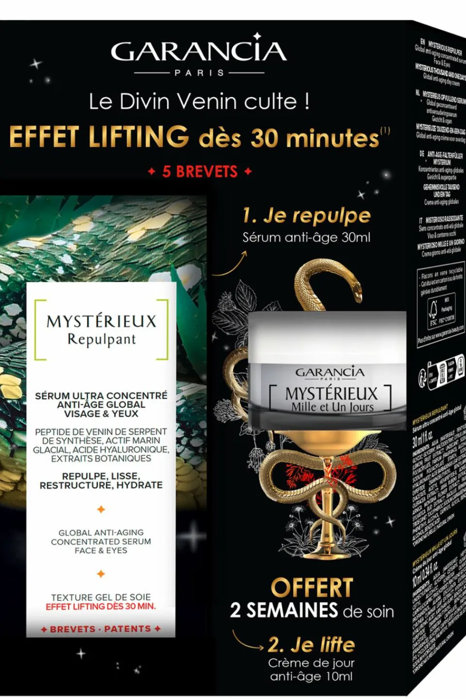 Complétez votre Rituel anti-âge Garancia avec le Soin de jour Mystérieux Mille et Un Jours et le Soin de nuit anti-âge Mystérieuses Mille et Une Nuits pour un peau intensément hydratée et repulpée.