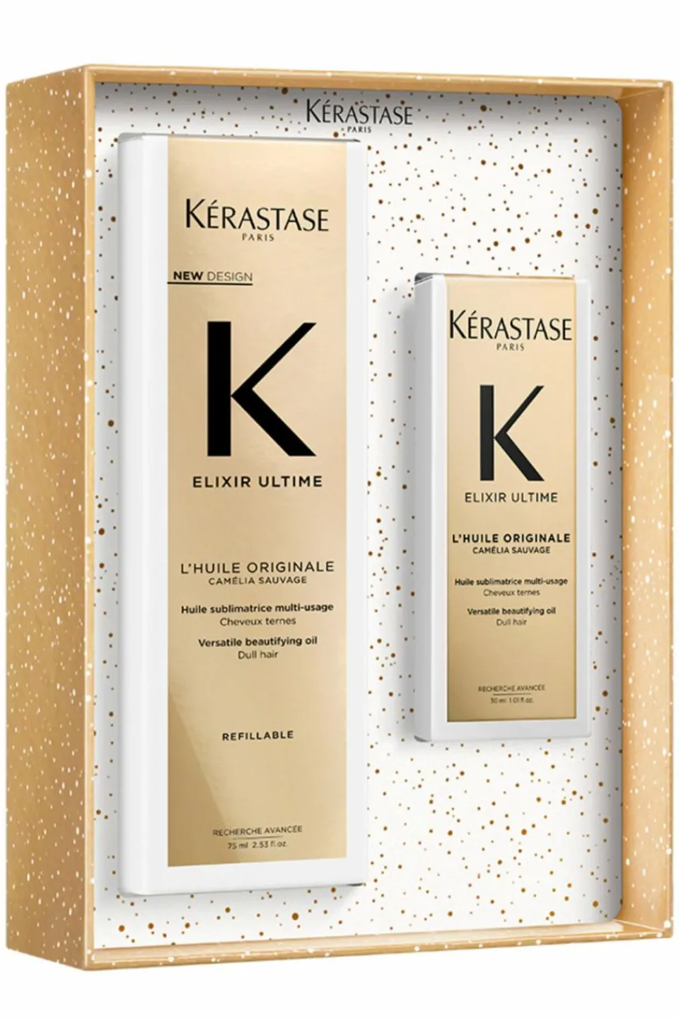 Elixir Ultime L’Huile Originale 75ml (Format Voyage) et 30ml (Format Voyage) : huile capillaire multi-usages sans rinçage qui sublime tous les types de cheveux.