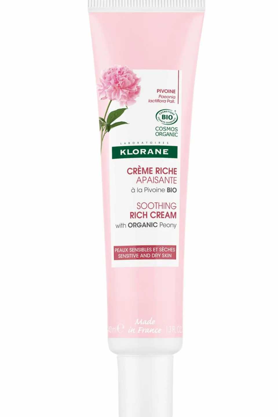 La Crème Riche Apaisante à la Pivoine BIO de Klorane apaise immédiatement et durablement les peaux sensibles et sèches. Sa texture fondante pénètre facilement et apporte un confort immédiat pour une peau parfaitement nourrie. Ce soin haute tolérance et certifié BIO est enrichi en extrait de Pivoine BIO, connu pour ses propriétés apaisantes et anti-irritantes. Les huiles d’Argan et de Carthame BIO, reconnues pour leur haute teneur en acides gras, renforcent la barrière cutanée et nourrissent la peau intensément.