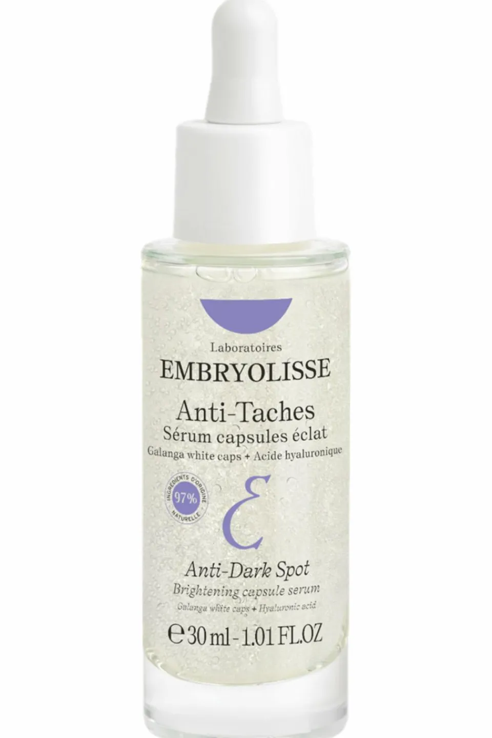 Embryolisse Sérum Capsules éclat est un concentré d’actifs qui cible tous les types de taches (âge, acné, grossesse, soleil) et améliore la qualité de la peau. Il est formulé à 97% d’ingrédients d’origine naturelle.