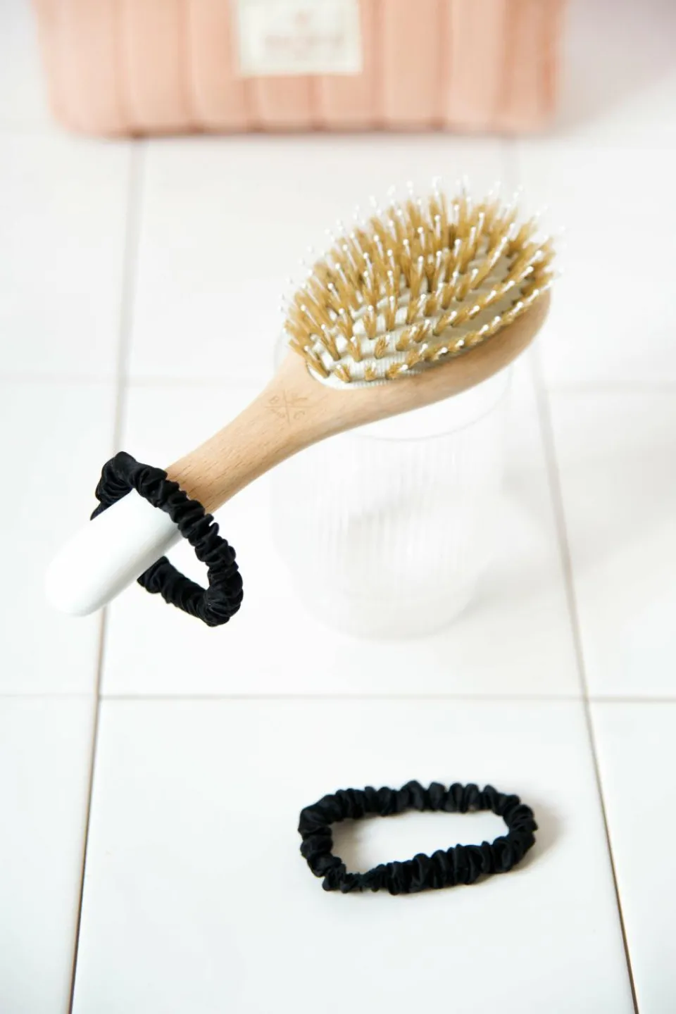 Grâce à la douceur et aux propriétés de la soie, le chouchou se fixe naturellement sans abîmer ni casser les cheveux.