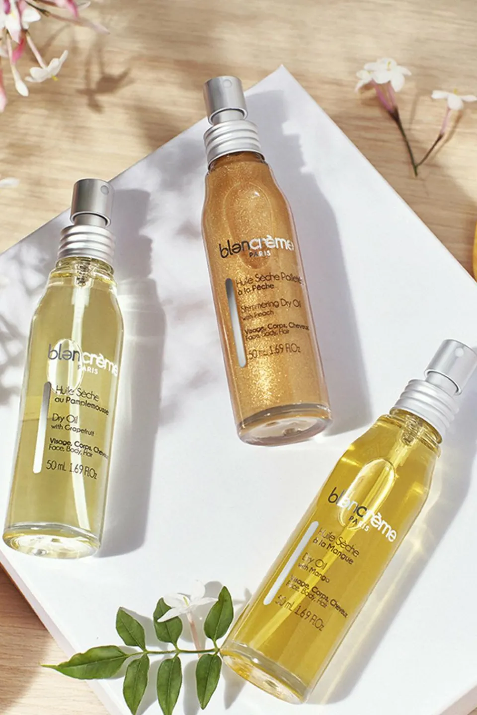 Notre huile sèche pailletée la magnifiera grâce à l’association des trois huiles nourrissantes d’amande douce, de noyau d’abricot et de jojoba. Sa formule est enrichie en extrait de pêche adoucissant. Sa texture non-grasse pénètre rapidement et laisse votre peau douce, nourrie et délicatement irisée. Cerise sur le gâteau, son parfum pêche ensoleillé est à tomber !