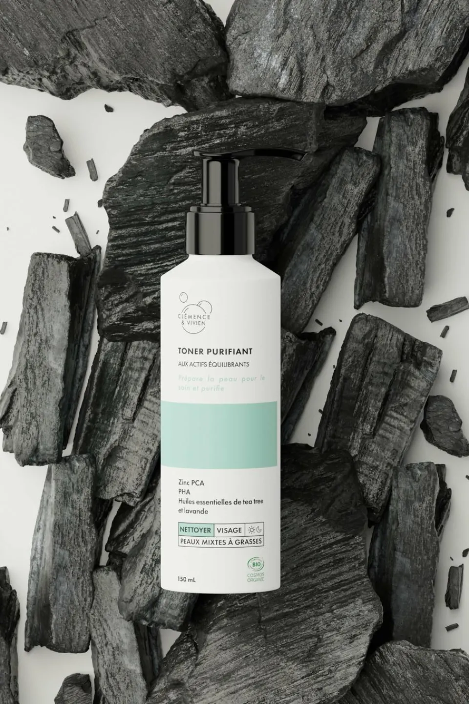 Notre Toner purifiant complète le nettoyage en éliminant les dernières impuretés et en préparant la peau à recevoir les soins suivants. Formulé avec du zinc PCA, un actif reconnu pour ses propriétés purifiantes et séborégulatrices, il aide à réduire l’excès de sébum, resserrer les pores et matifier la peau sans l’agresser. Résultat : une peau claire, fraîche et visiblement plus nette. Avec notre Toner purifiant, on vous propose d’agir sur les besoins essentiels des peaux mixtes à grasses :