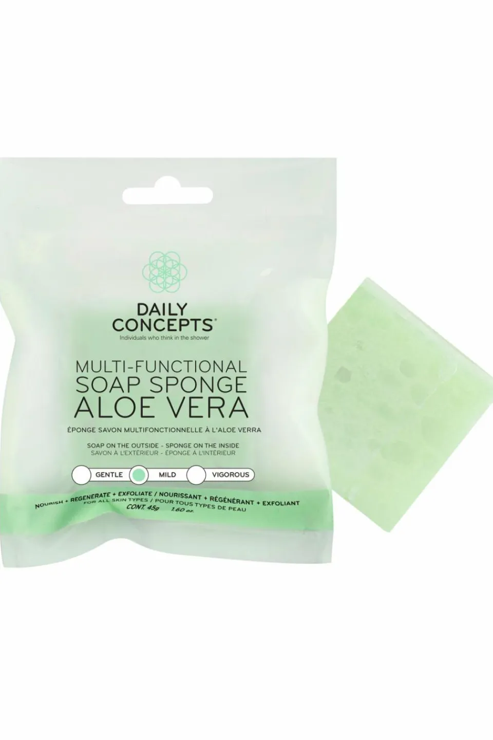 Laissez-nous vous présenter l’accessoire qui va révolutionner votre douche quotidienne. Cette éponge/savon multifonction cache un actif magique : l’aloe vera.
