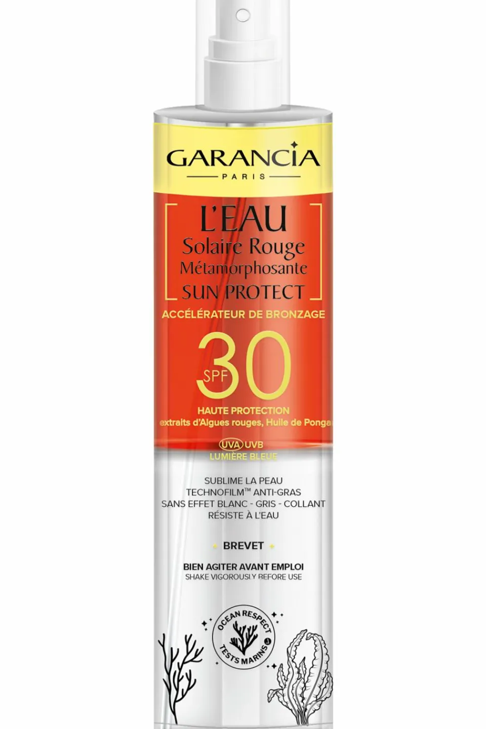 L’eau Métamorphosante Rouge Visage et Corps a un SPF 30 multi-actions : accélératrice de bronzage, anti-lumière bleue, anti-oxydante pour une sensorialité unique et son effet « peau nue » incroyable.