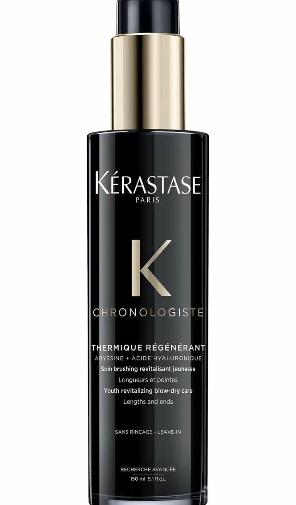 Sa formule enrichie en acide hyaluronique, abyssine et vitamine E aide à combattre les signes de l’âge des cheveux comme le dessèchement et l’affinement. Sa texture légère et fondante, infusée de la signature olfactive Chronologiste aux notes de rose, de cèdre et de musc, procure une sensation de bien-être à l’application.