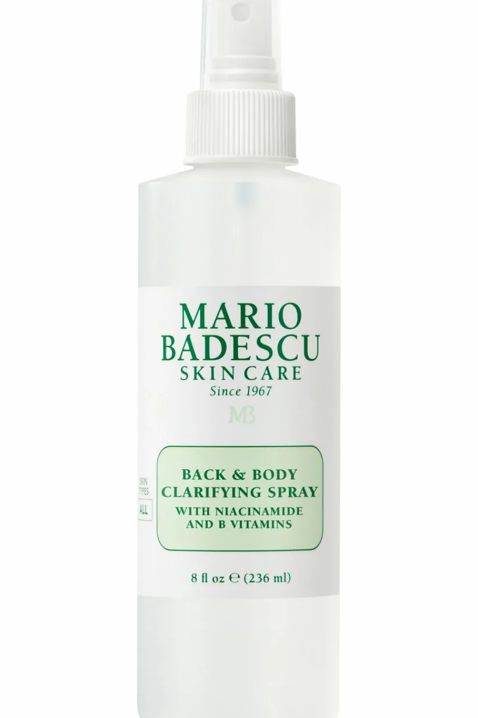 Formulé avec du zinc PCA, de la niacinamide, de la biotine et du panthénol, ce vaporisateur cible efficacement les germes tenaces et les imperfections corporelles.