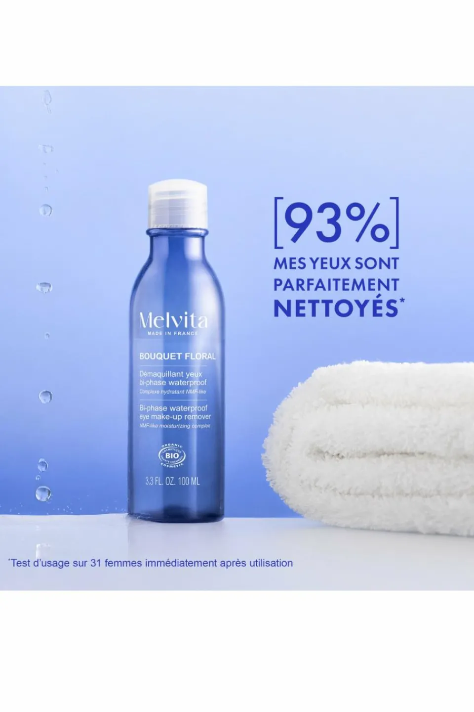 Le Démaquillant Yeux Bi-Phase Waterproof élimine instantanément tous les maquillages, même waterproof, sans laisser de film gras.