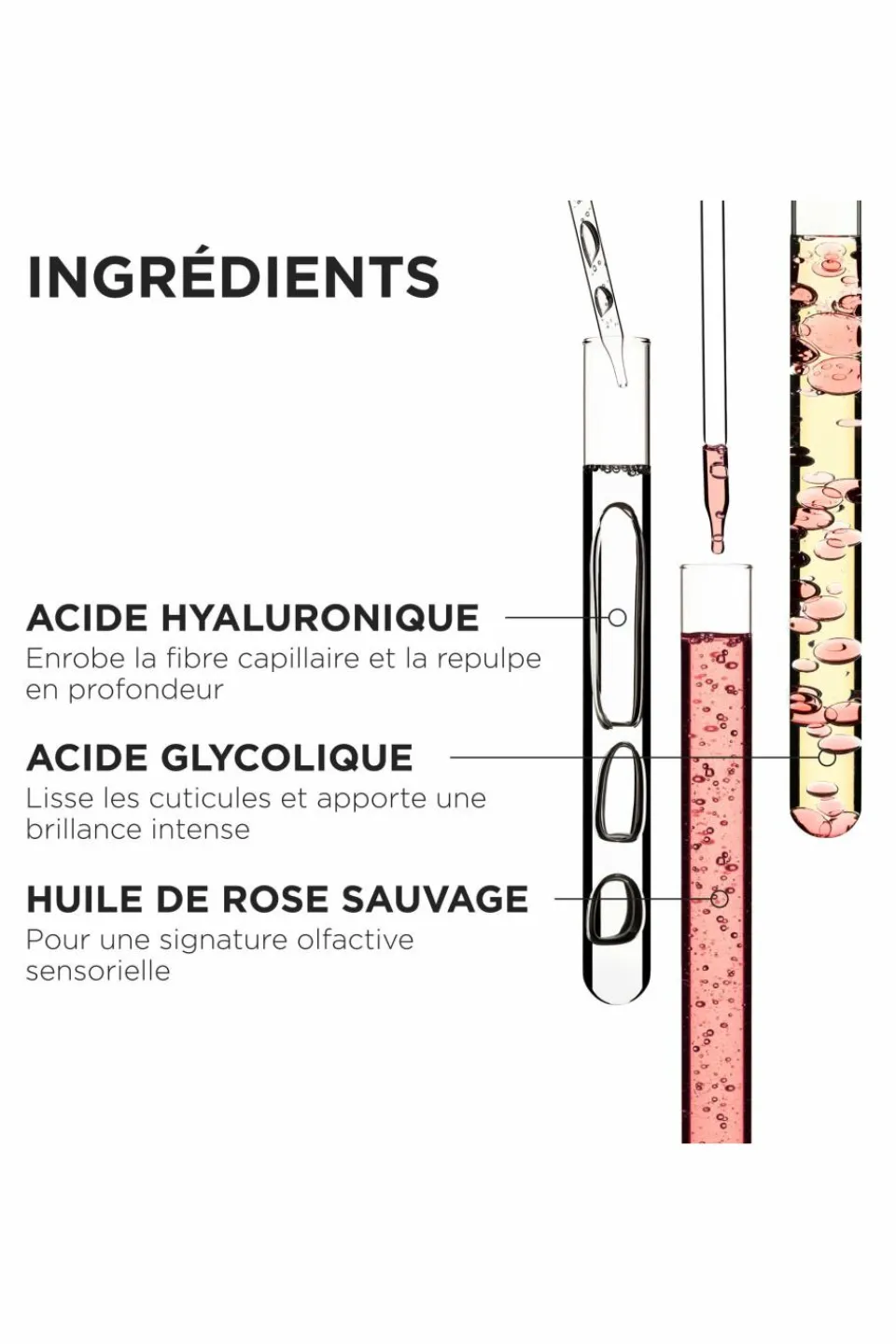 Entrez dans le monde du gloss avec le 1er soin hydra-glazing* pour des cheveux légers, souples et ultra-glossy**, mais sans frisottis.