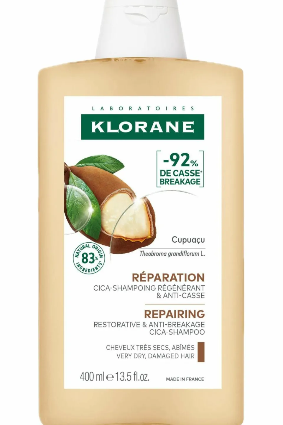 LeCica-ShampoingRéparation régénérant et anti-casse de Klorane nettoie, nourrit et répare les cheveux très secs, abîmés, dès la première utilisation*.