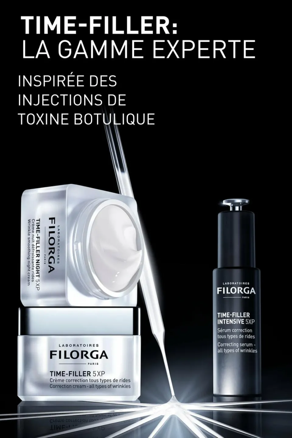 Sa formule 5XP s’appuie sur un puissant cocktail d’actifs inspirés des injections de toxine botulique pour lisser simultanément les rides profondes, les rides de sécheresse, les rides d’expression, celles de surface, et en particulier les plis causés par le frottement de l’oreiller sur le visage durant le sommeil.