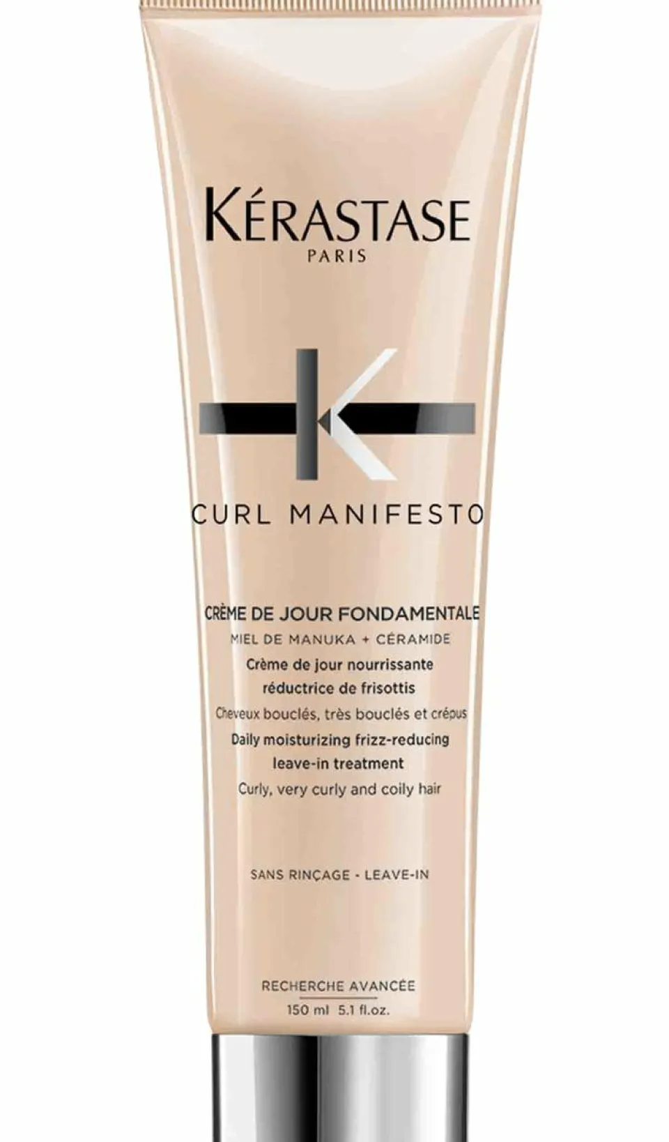 La Crème de Jour Fondamentale de la gamme Curl Manifesto de Kérastase contrôle les frisottis des cheveux bouclés, frisés et crépus. Cette crème vient nourrir les cheveux en profondeur, sceller l’hydratation dans la fibre et définir les boucles. Partie intégrante de la routine Curl Manifesto, son application permet une action anti-frisottis instantanée, qui se prolonge pendant 24h. Sa texture ultra-légère permet un démêlage facile et sa formule crée une protection thermique autour du cheveu allant jusqu’à 230°C.