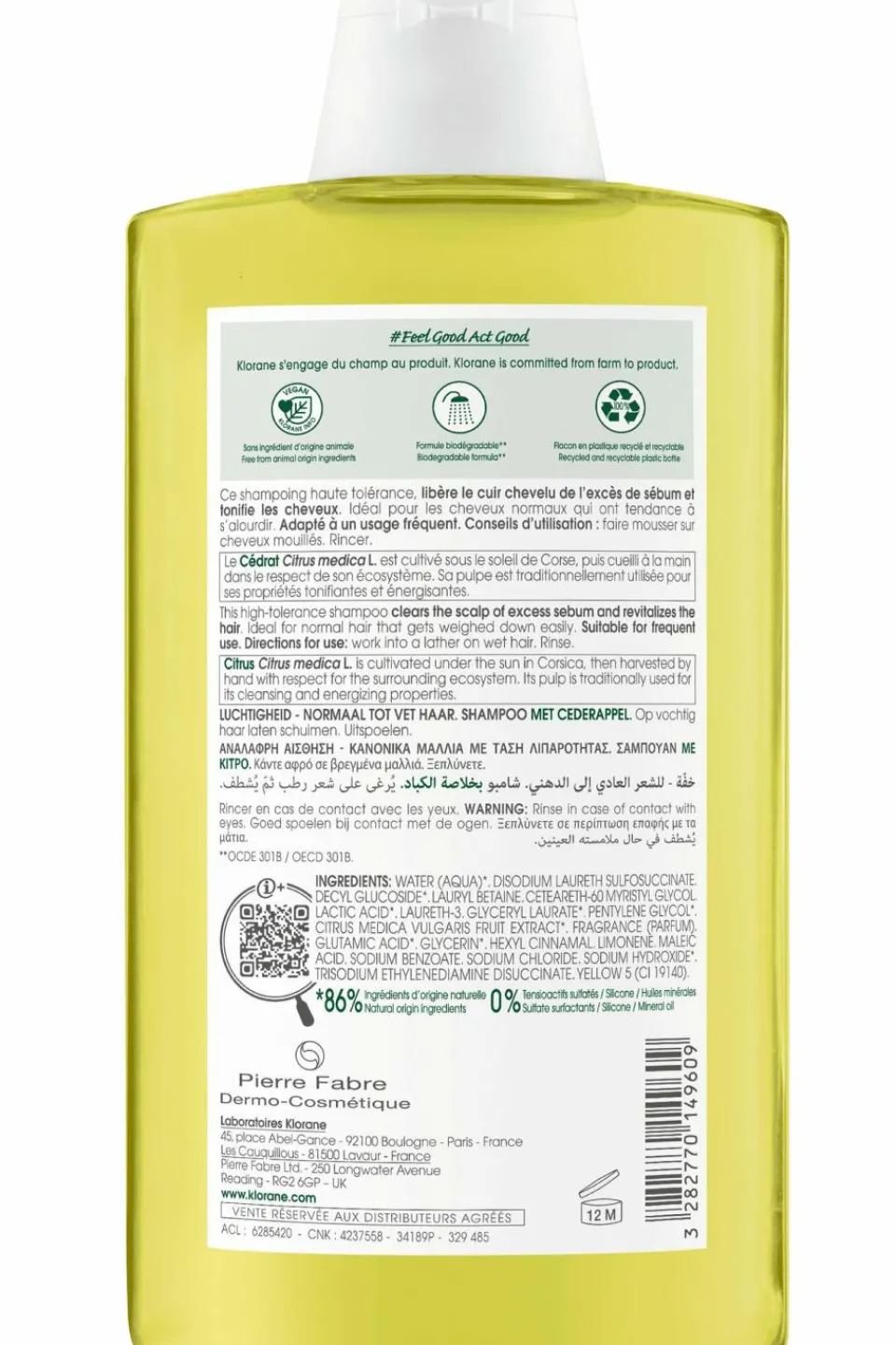 Sa formule unique associant un actif séborégulateur à la pulpe de Cédrat, agrume ancestral cultivé sous le soleil corse, laisse les cheveux propres plus longtemps et révèle un cuir chevelu plus sain. Gorgés d’énergie, nets et plus légers, les cheveux regraissent moins vite et gagnent en éclat.