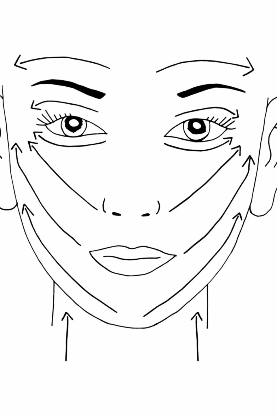 -Sourcils: partir du début des sourcils et continuer le mouvement jusqu’aux tempes.