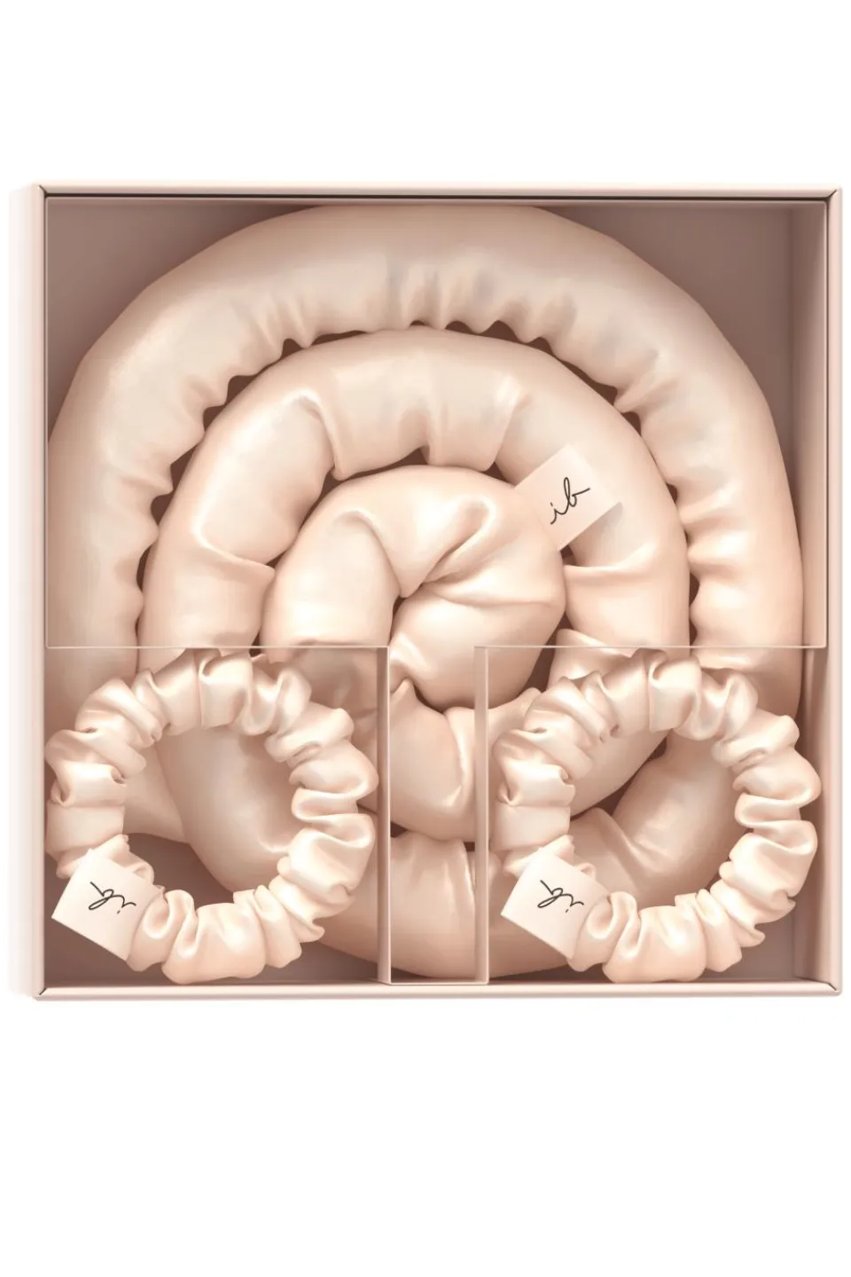 La matière douce du boudin pour boucles est conçue pour un sommeil plus confortables, tandis que les élégants chouchous maintiennent les boucles en place.