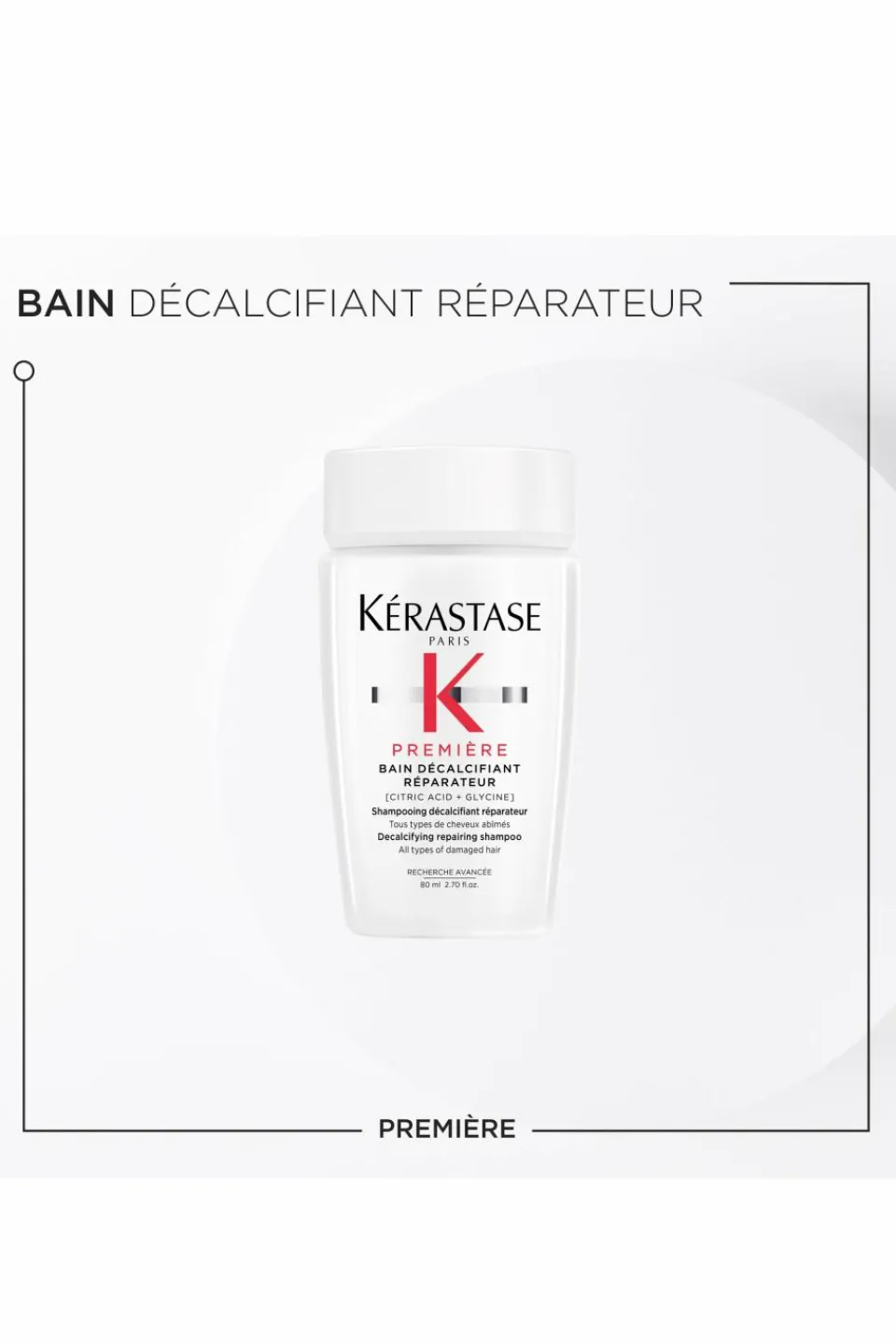 Bain Décalcifiant réparateur 80ml: Ce shampoing professionnel sans sulfate nettoie en douceur le cuir chevelu et les cheveux tout en éliminant l’overdose de calcium* qui fragilise davantage les cheveux abîmés/sensibilisés. Les cheveux sont réparés de l’intérieur. Ce shampooing crémeux libère une mousse abondante et un parfum d’agrumes irrésistible. Les cheveux sont lisses, brillants, rebondis et faciles à coiffer.