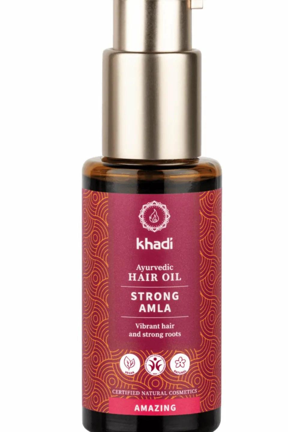 L’Huile pour cheveux et cuir chevelu Khadi Strong Amla – pour des cheveux sains, forts et brillants de la racine à la pointe.