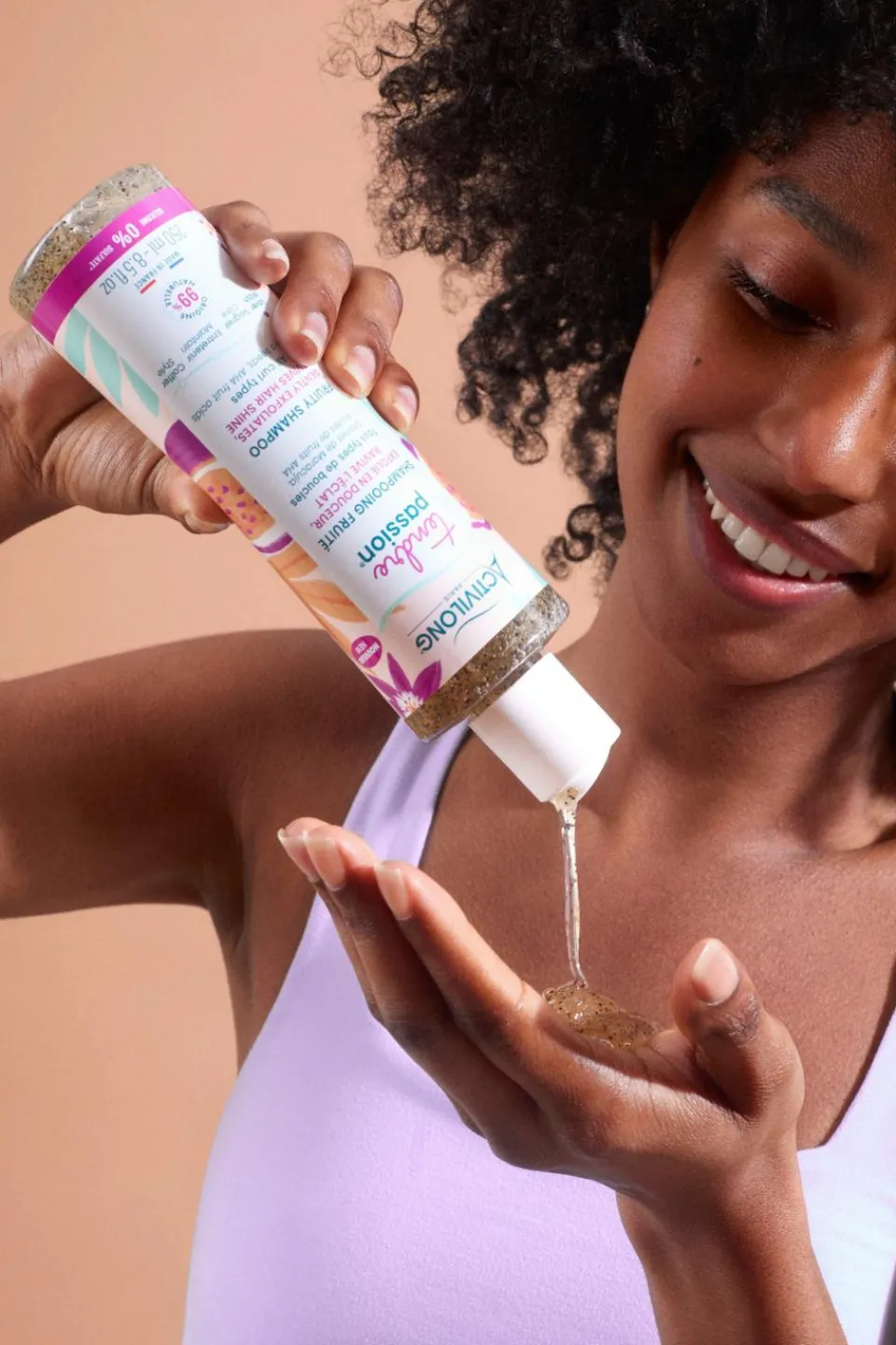 A la fois doux et acidulé, ce shampooing exfoliant aux graines de maracudja va gommer toutes les zones d’ombres qui ternissent votre chevelure.