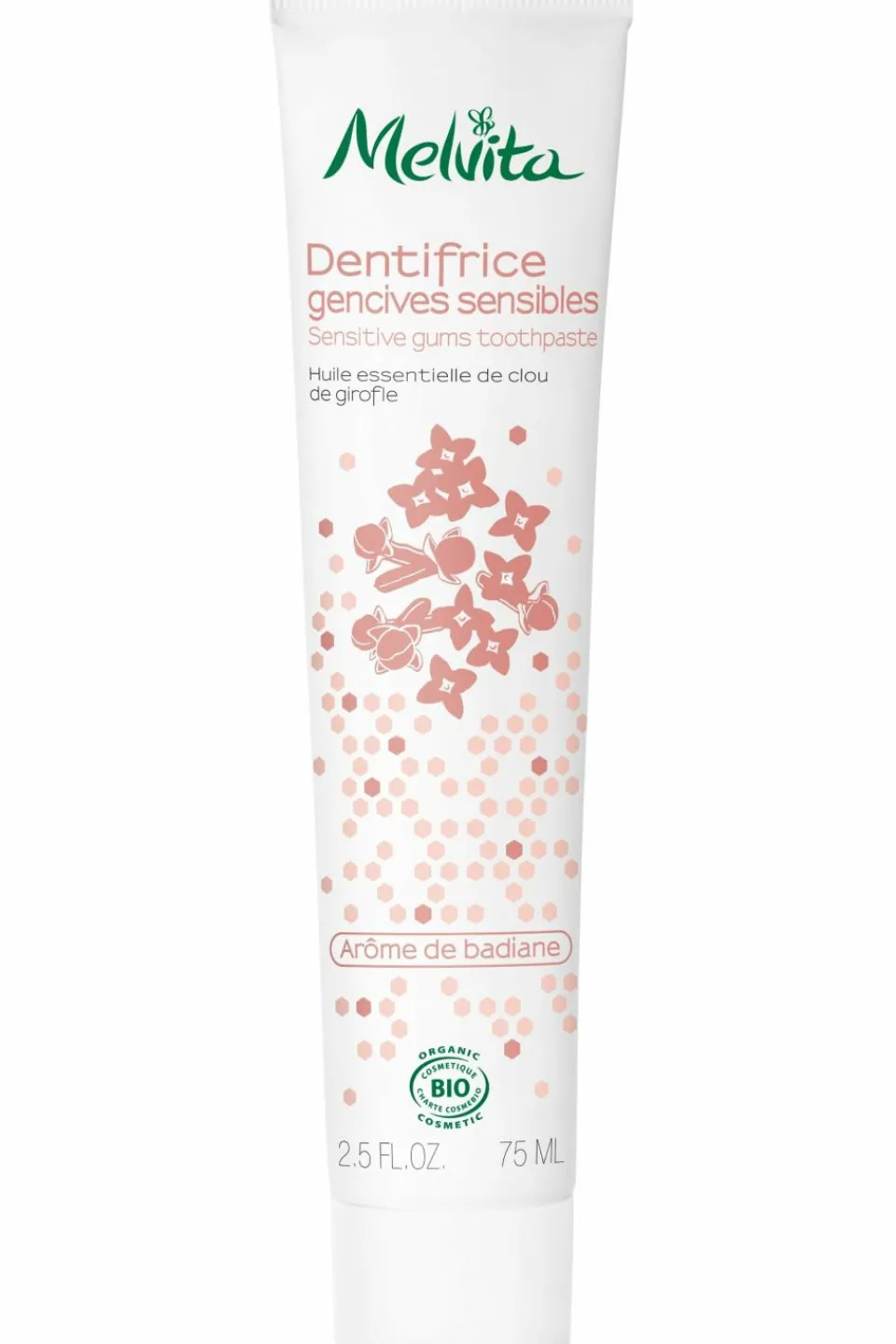 HORDEUM VULGARE STEM WATER* – SORBITOL – HYDRATED SILICA – GLYCERIN*** – SODIUM BICARBONATE – CALCIUM CARBONATE – EUGENIA CARYOPHYLLUS (CLOVE) FLOWER OIL* – ROSMARINUS OFFICINALIS (ROSEMARY) LEAF OIL* – SODIUM COCOYL GLUTAMATE – CELLULOSE GUM – CITRIC ACID – SODIUM BENZOATE – AROMA/FLAVOR – EUGENOL** *Ingrédients issus de l’Agriculture Biologique / Ingredients from Organic Farming. **Constituants naturels des extraits végétaux / Natural components of plant extracts. ***Transformés à partir d’ingrédients biologiques / Made using organic ingredients.