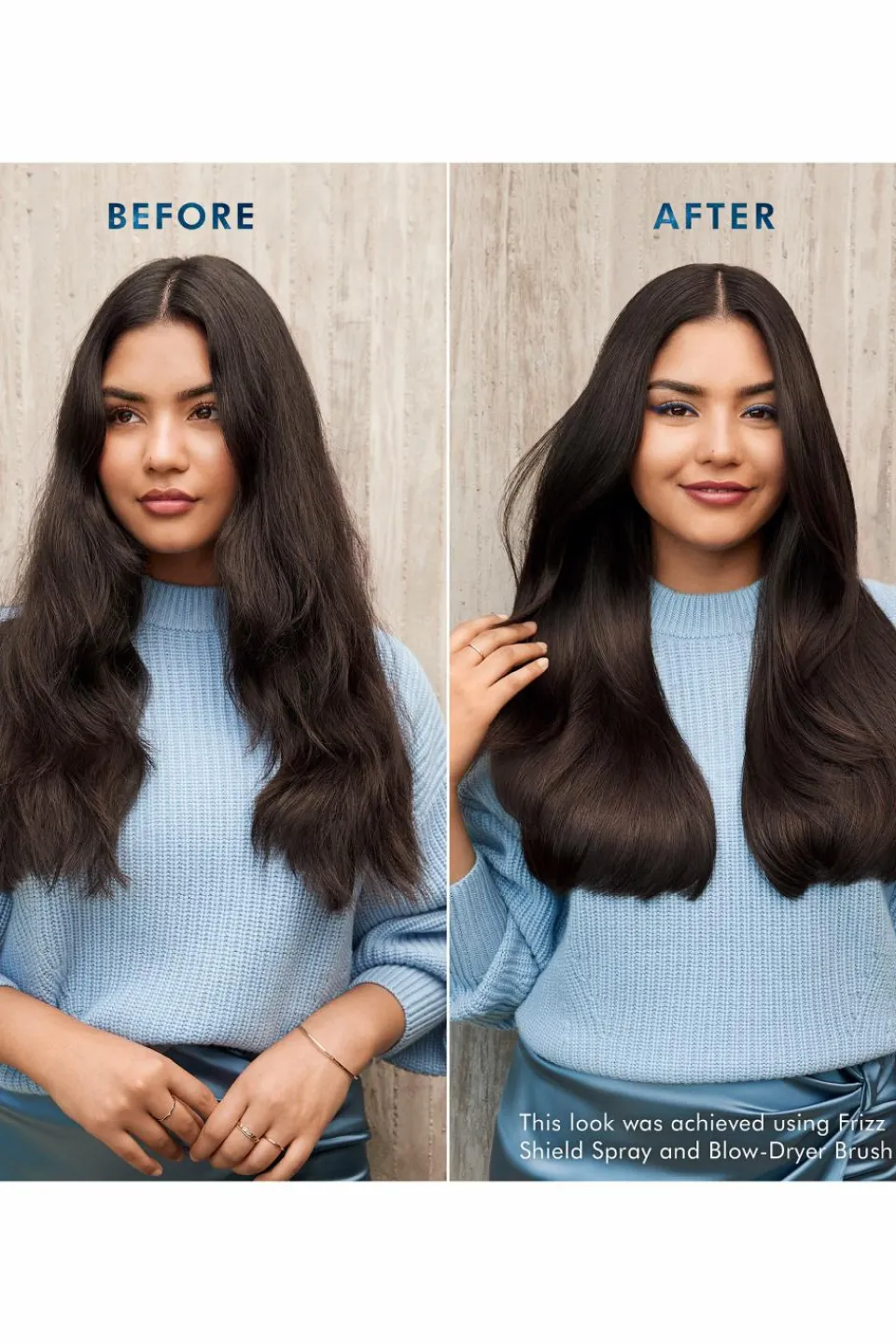 Cette brume légère activée à la chaleur, laisse les cheveux instantanément soyeux et disciplinés tout en offrant une protection contre les frisottis, les mèches rebelles et l’électricité statique.