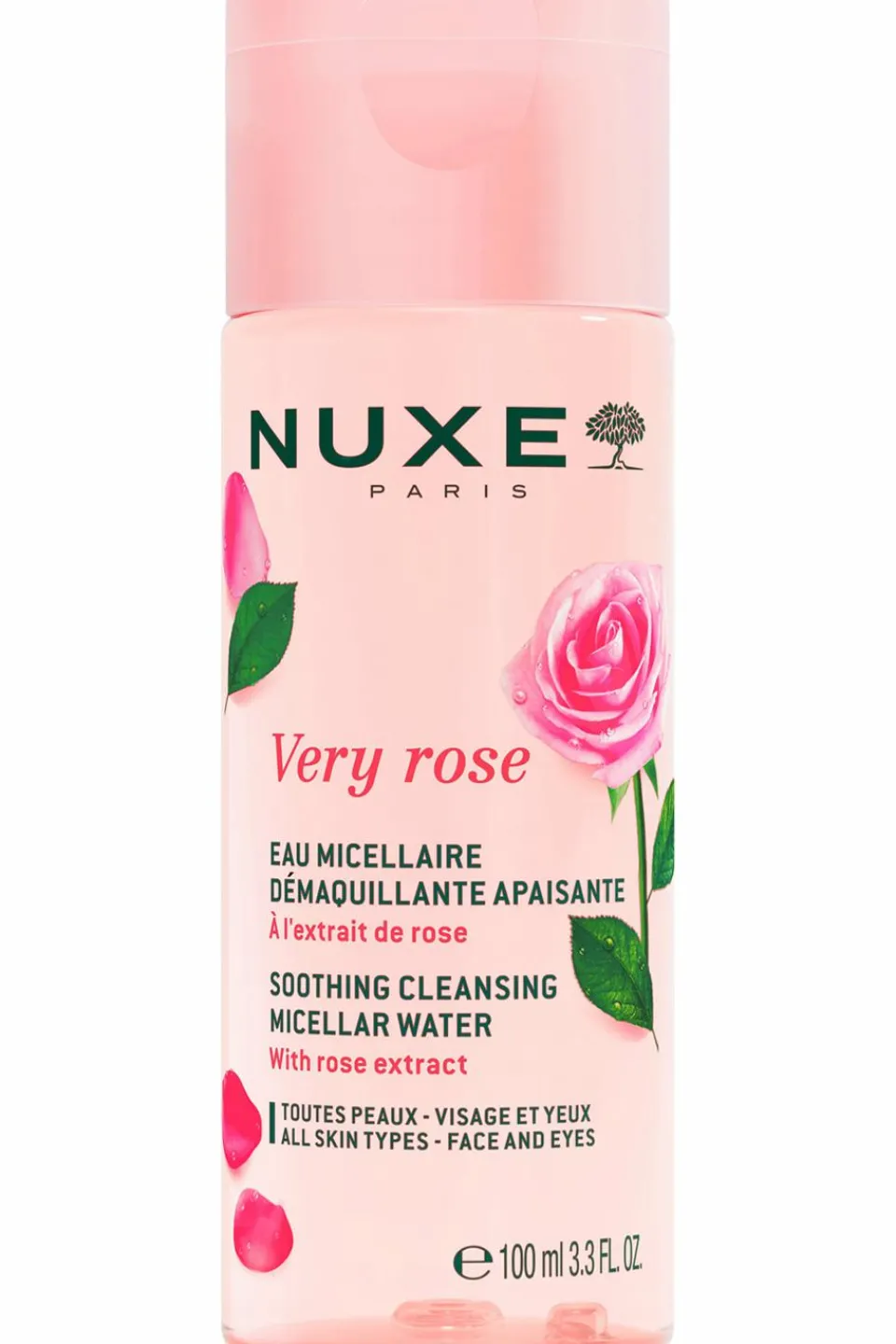 Formulée avec un extrait de rose hydratant et apaisant.