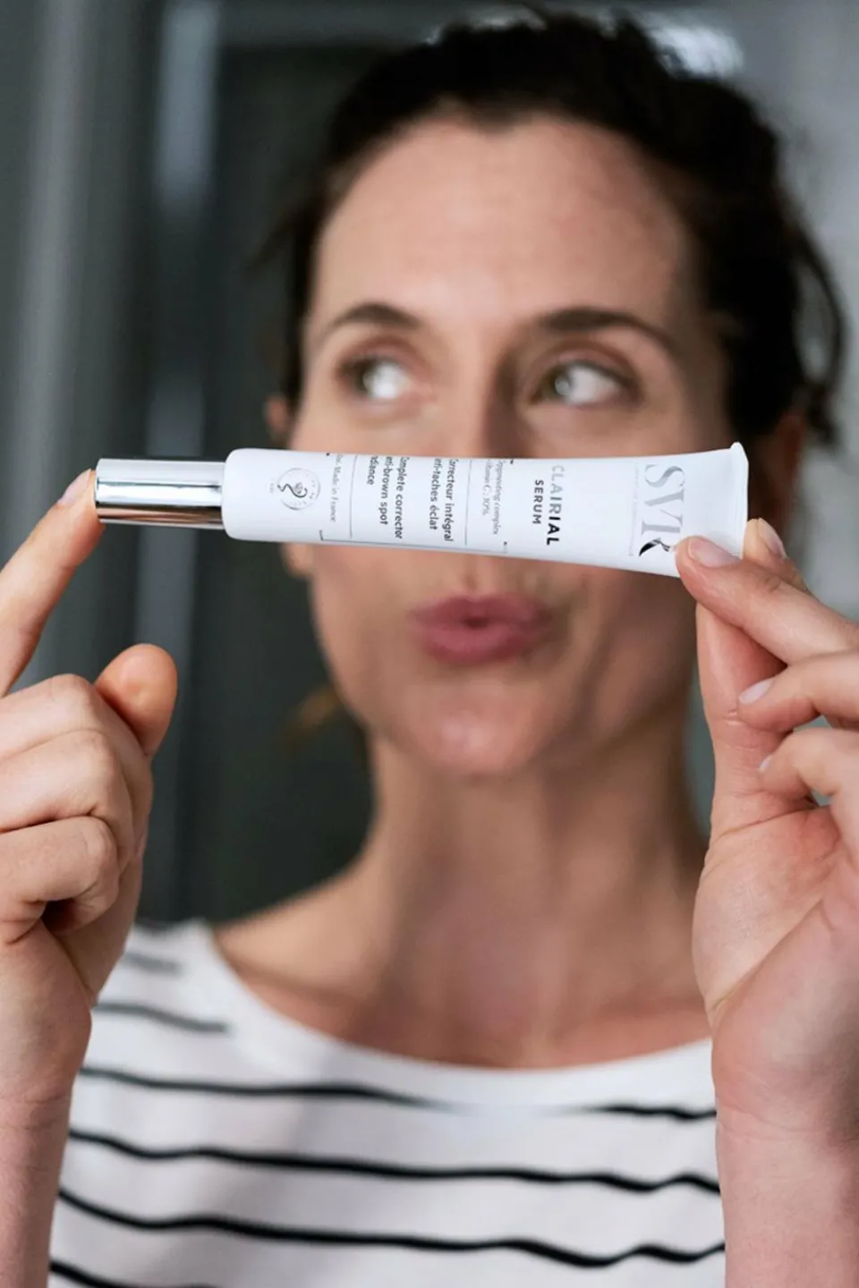 Le sérum Clairial corrige et réduit visiblement les taches brunes existantes dès 2 semaines(1) tout en prévenant et limitant leur réapparition grâce à sa triple action : anti-taches, anti-pollution et anti-récidive. Elle unifie et illumine le teint de toutes les peaux claires à foncées. Sa texture légère et hydratante pénètre rapidement et laisse un fini soyeux !